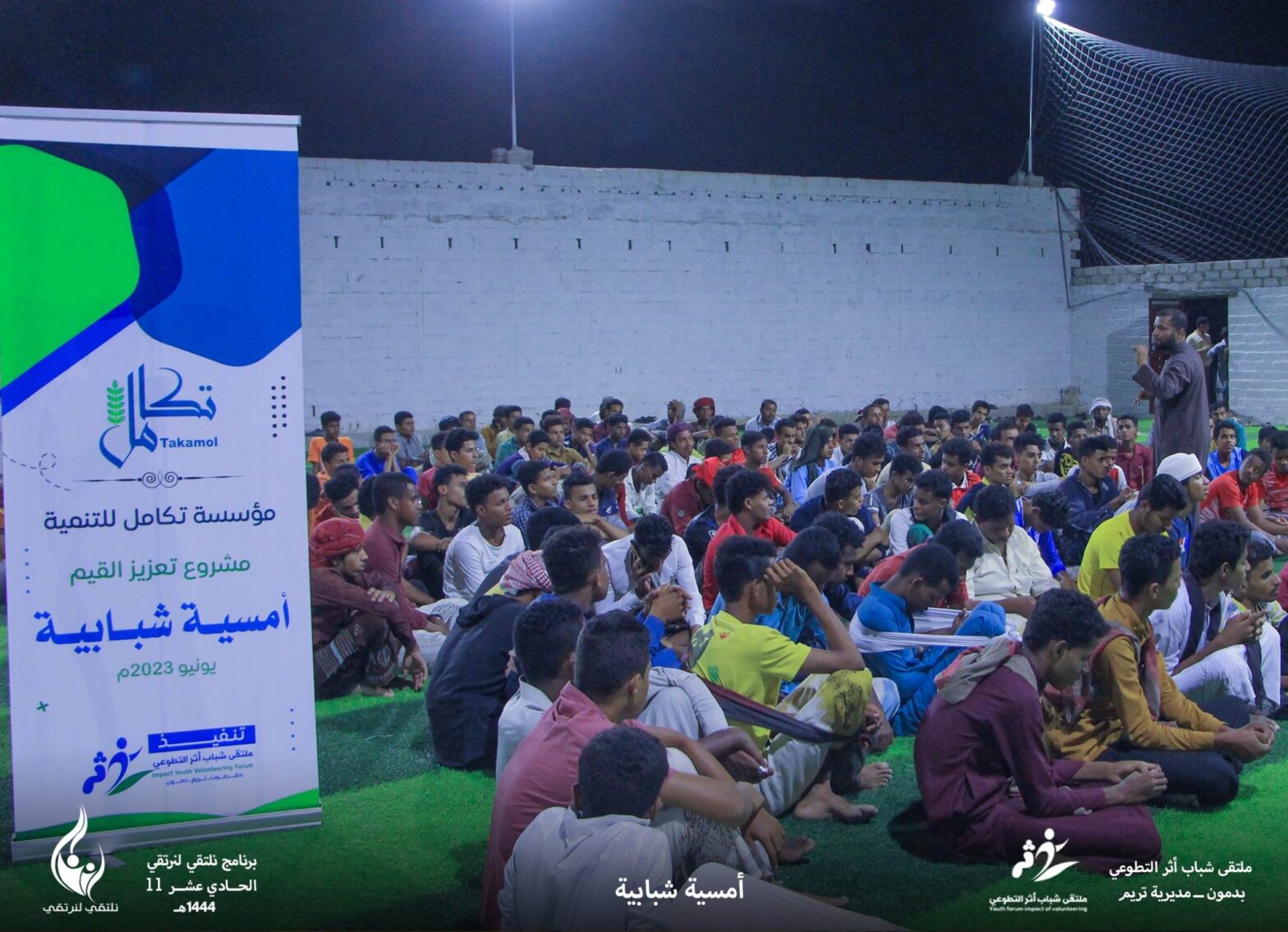 ملتقى شباب أثر التطوعي ينظم أمسية شبابية بمنطقة دمون دمون ـ تريم | 2 ذي الحجة 1444 هـ بتمويل من مؤسسة تكامل للتنمية نفذ ملتقى شباب أثر التطوعي بدمون أمسية شبابية مساء الإثنين 1 ذي الحجة احتضنها ملعب وادي دمون المعشب. واستهدفت الأمسية شريحة الشباب من منطقة دمون الذين تراوح عددهم 130 شابًا. وتخللت الأمسية… متابعة قراءة بتمويل مؤسسة تكامل..